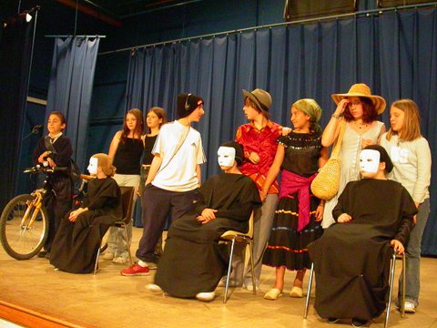 Au cours du premier trimestre, l'approche du théâtre se fait par des jeux théatraux, des exercices ludiques : se sentir bien, avec son corps, sa voix, son mental. Beaucoup de travail collectif, aussi.